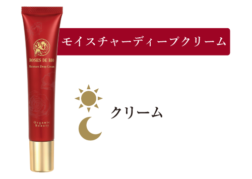 赤バラエキスとダマスクローズウォーターをベースにしたなめらかなクリームは、お肌に じっくり浸透※1し、お肌がうるおう仕組みを整え、うるおいで満たしてふっくらとさせる効果