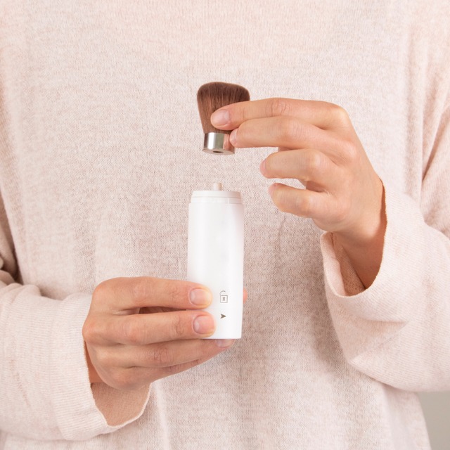 ・ブラシのキャップを外し、ブラシの最下部を回してオープンに合わせ、手の甲などにブラシを軽く叩いてパウダーが出ることを確認してから塗布してください。